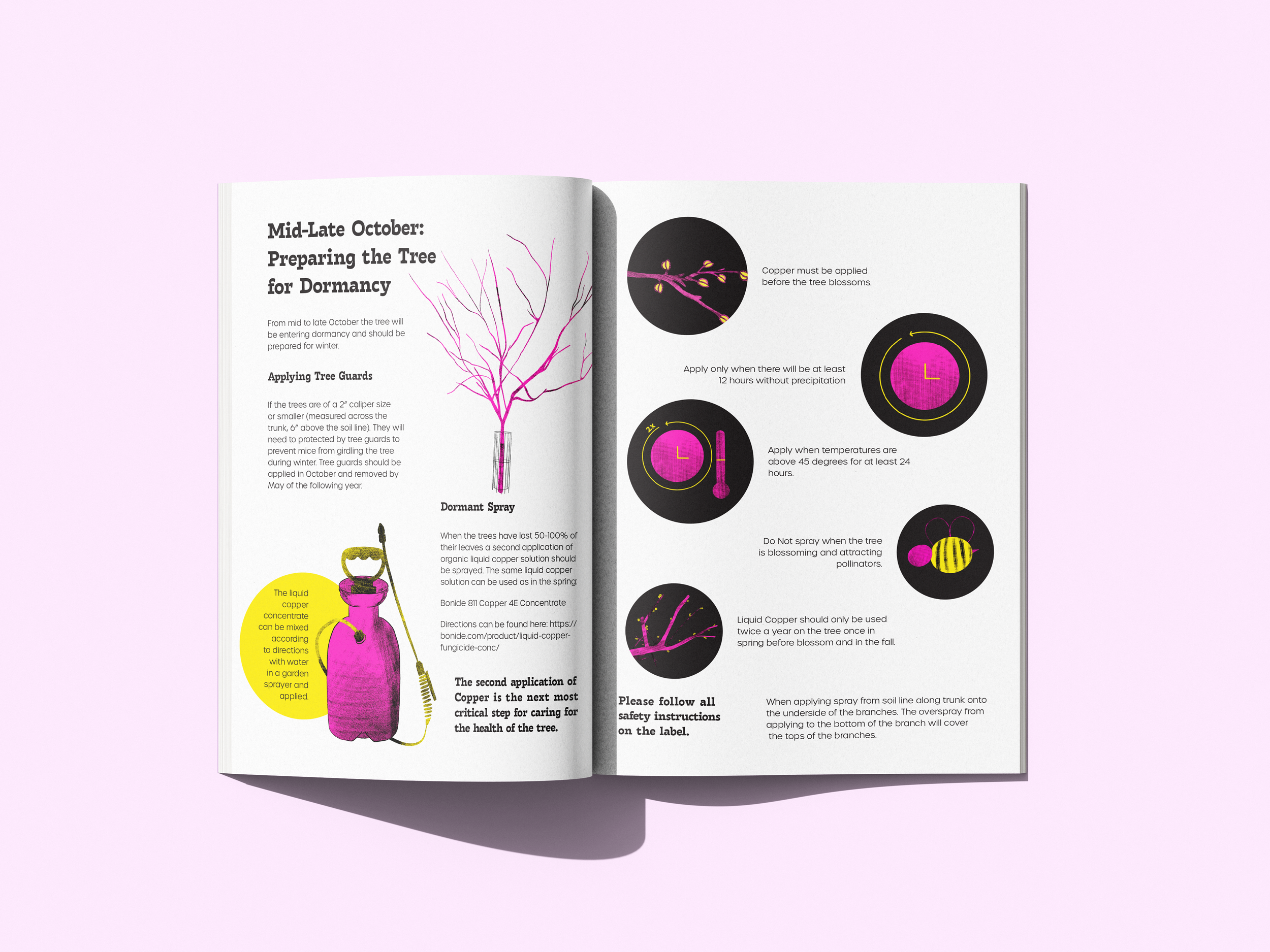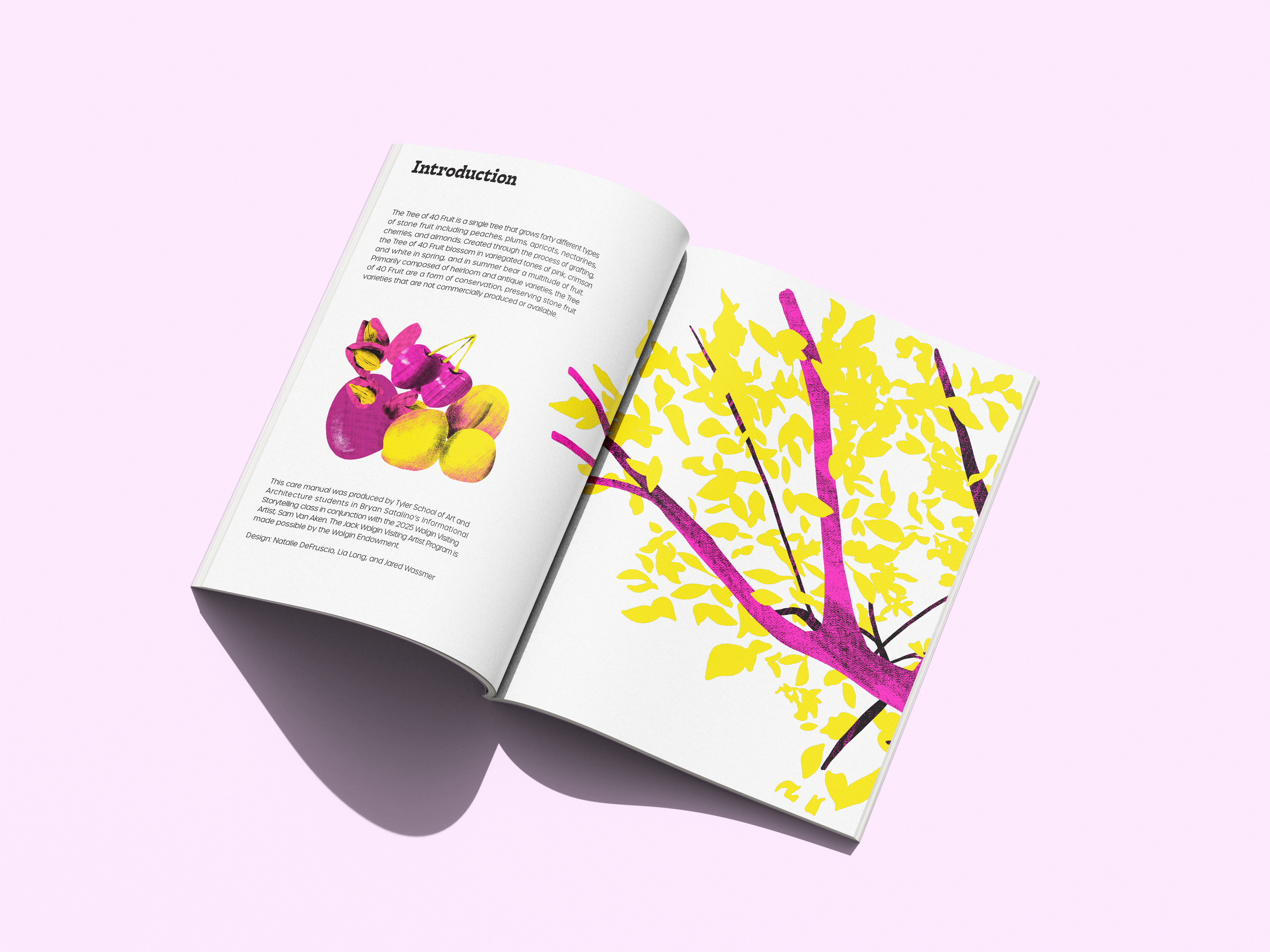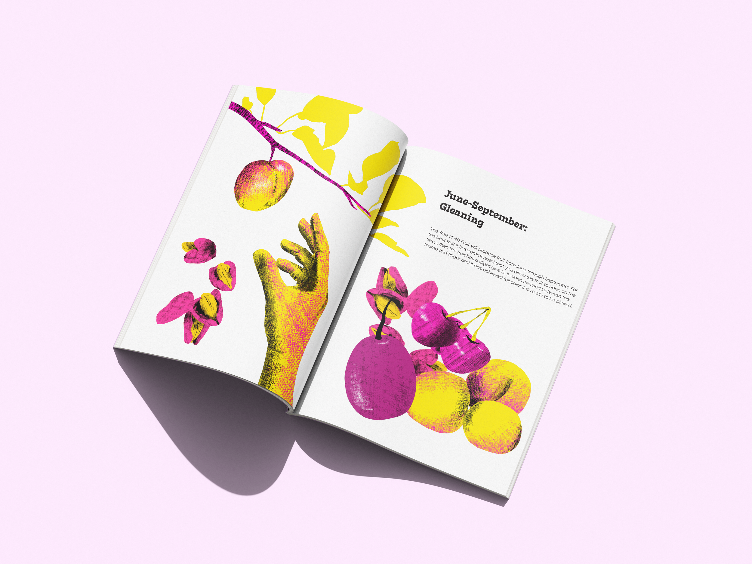 The Tree of 40 Fruit care manual is a collaborative project I did at Tyler: Art and Architecture with Lia Long and Jared Wassmer for Sam Van Aken’s Tree of 40 Fruit. Combining the handmade feel with textured illustrations and the modern chic text uses, we created a manual that not only is informational but also looks good.