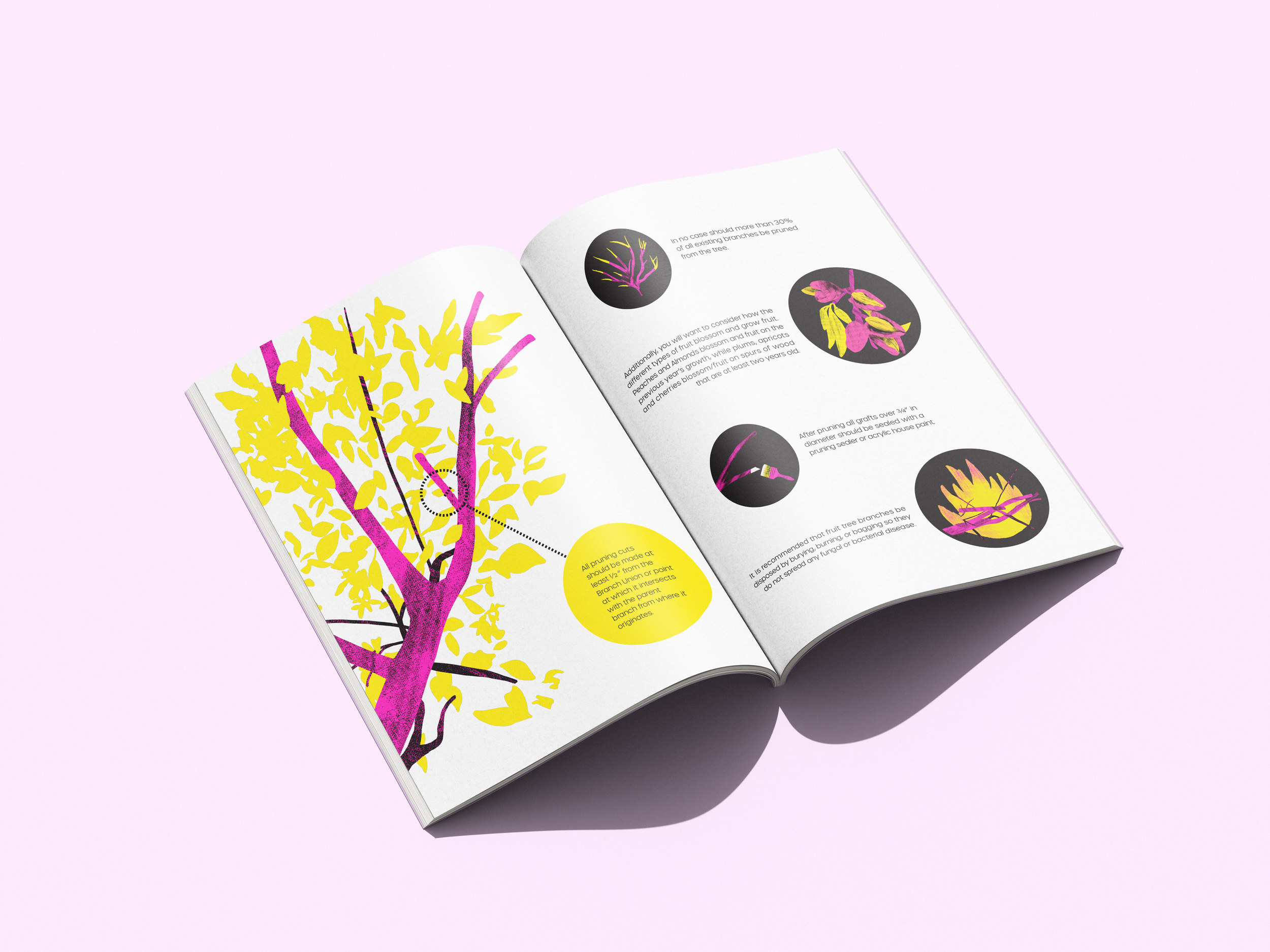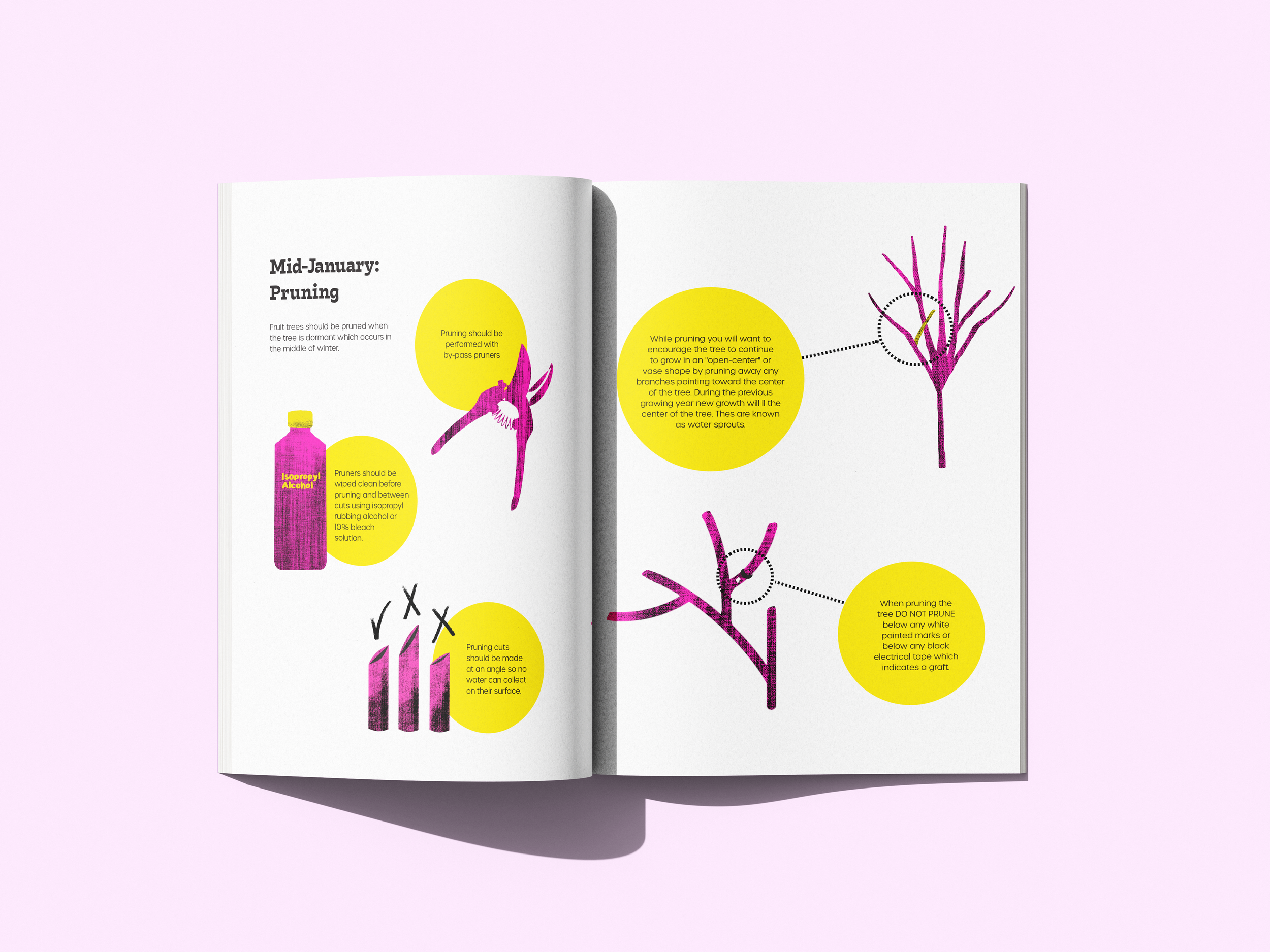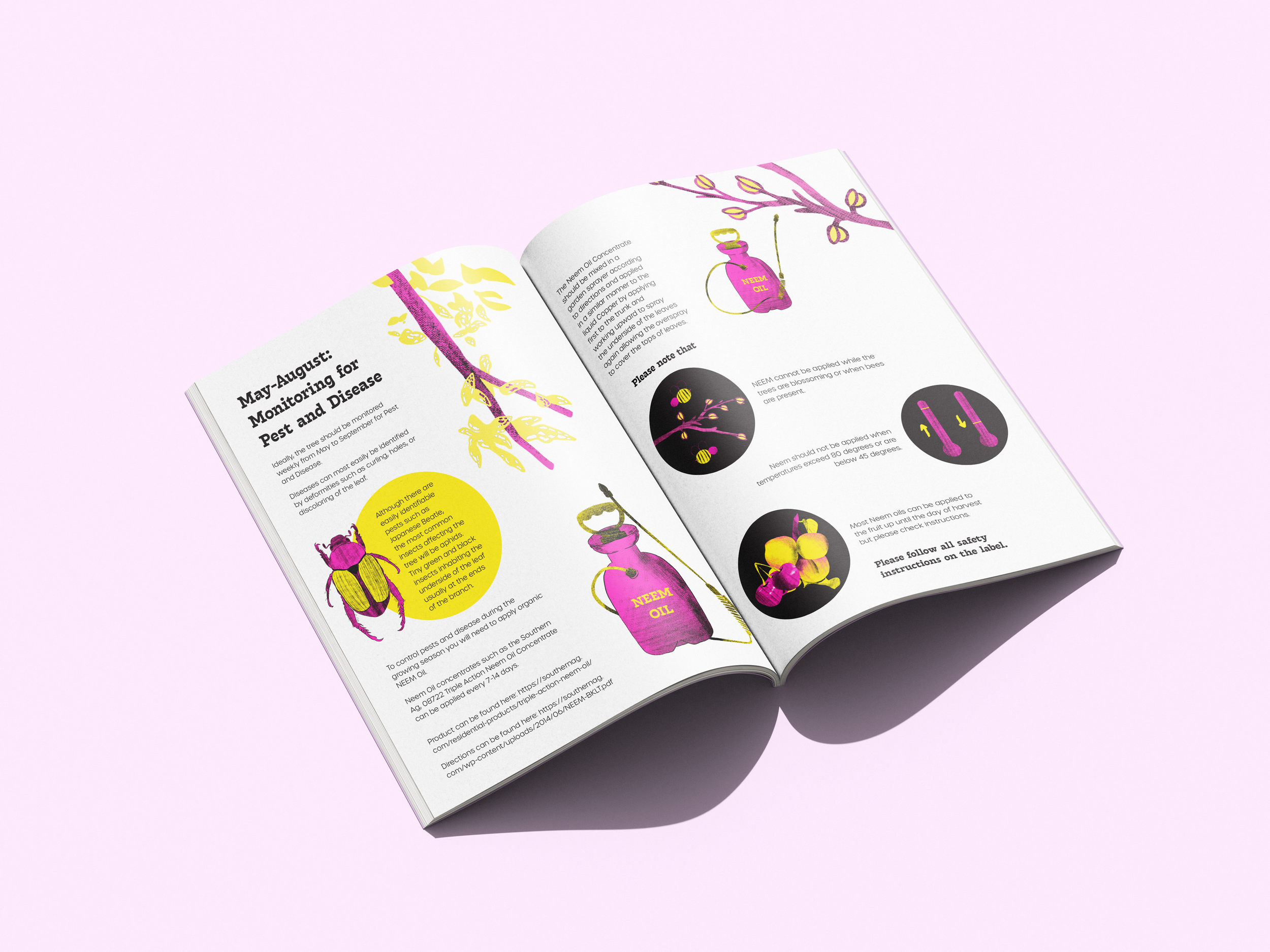 The Tree of 40 Fruit care manual is a collaborative project I did at Tyler: Art and Architecture with Lia Long and Jared Wassmer for Sam Van Aken’s Tree of 40 Fruit. Combining the handmade feel with textured illustrations and the modern chic text uses, we created a manual that not only is informational but also looks good.